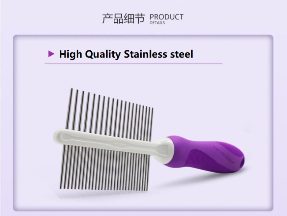 Dogs Cats Double-Sided Dog Comb Silicone, Stainless steel,StainlessSteel Purple,green 204*66mm |